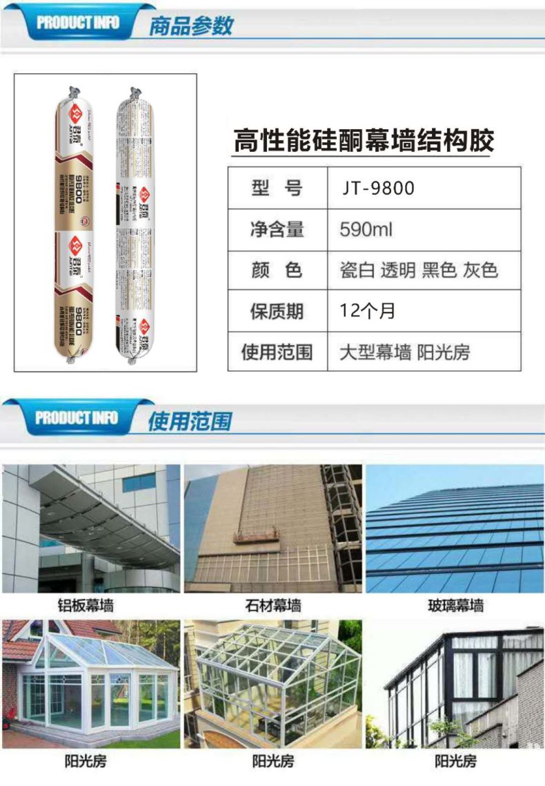 使用范圍:高級幕墻、建筑物全隱框或半隱框玻璃幕墻結構性粘接;結構性中空玻璃二道粘接密封;其它多種用途。